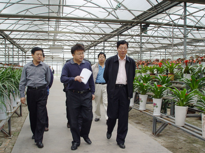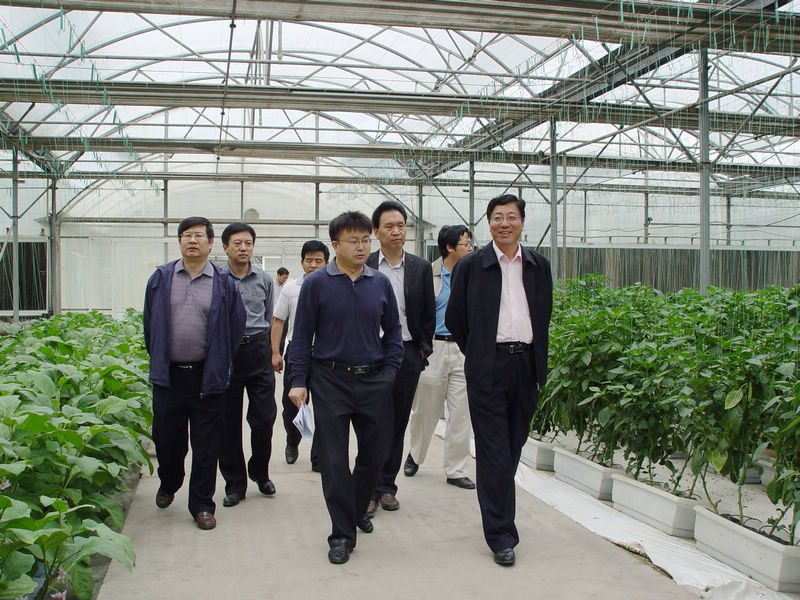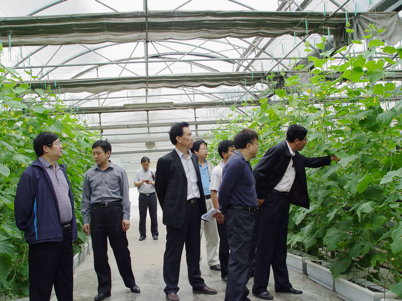 在新天地公司设施农业示范园,资产公司总经理、新天地公司董事长张建平详细介绍了示范园的总体规划,建设规模和运营的基本情况。孙其信校长分别参观了示范园中的花卉区、无土栽培蔬菜区等,并就设施农业建设、营养液和菜苗价格、产品销售情况以及农业技术推广等问题进行了详细了解。