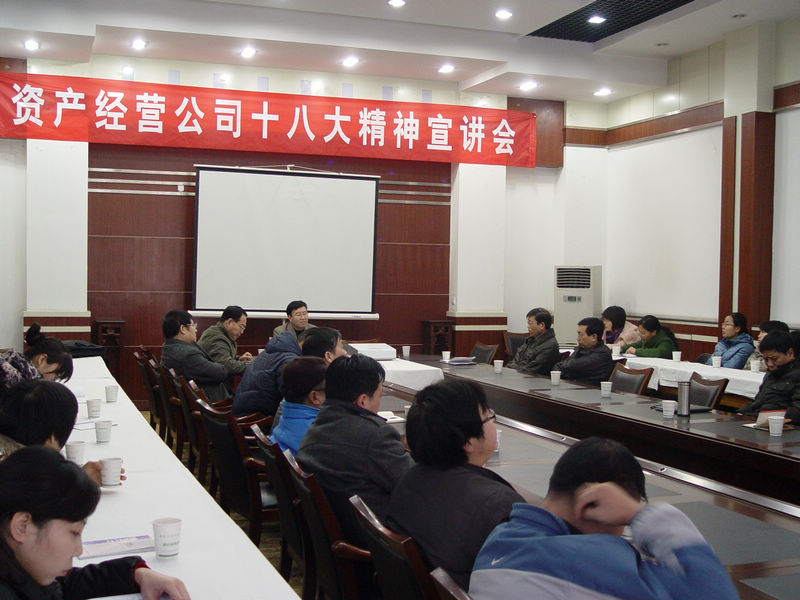 12月26日下午,公司党委在亦乐园思九厅举行十八大精神宣讲报告会,邀请校党委十八大精神宣讲团成员,宣传部副部长闫德忠同志做十八大精神宣讲辅导,报告会由公司党委副书记景军胜主持,公司党委、纪委委员,各支部组成人员以及机关全体工作人员,下属企业的厂长经理40余人参加了报告会。